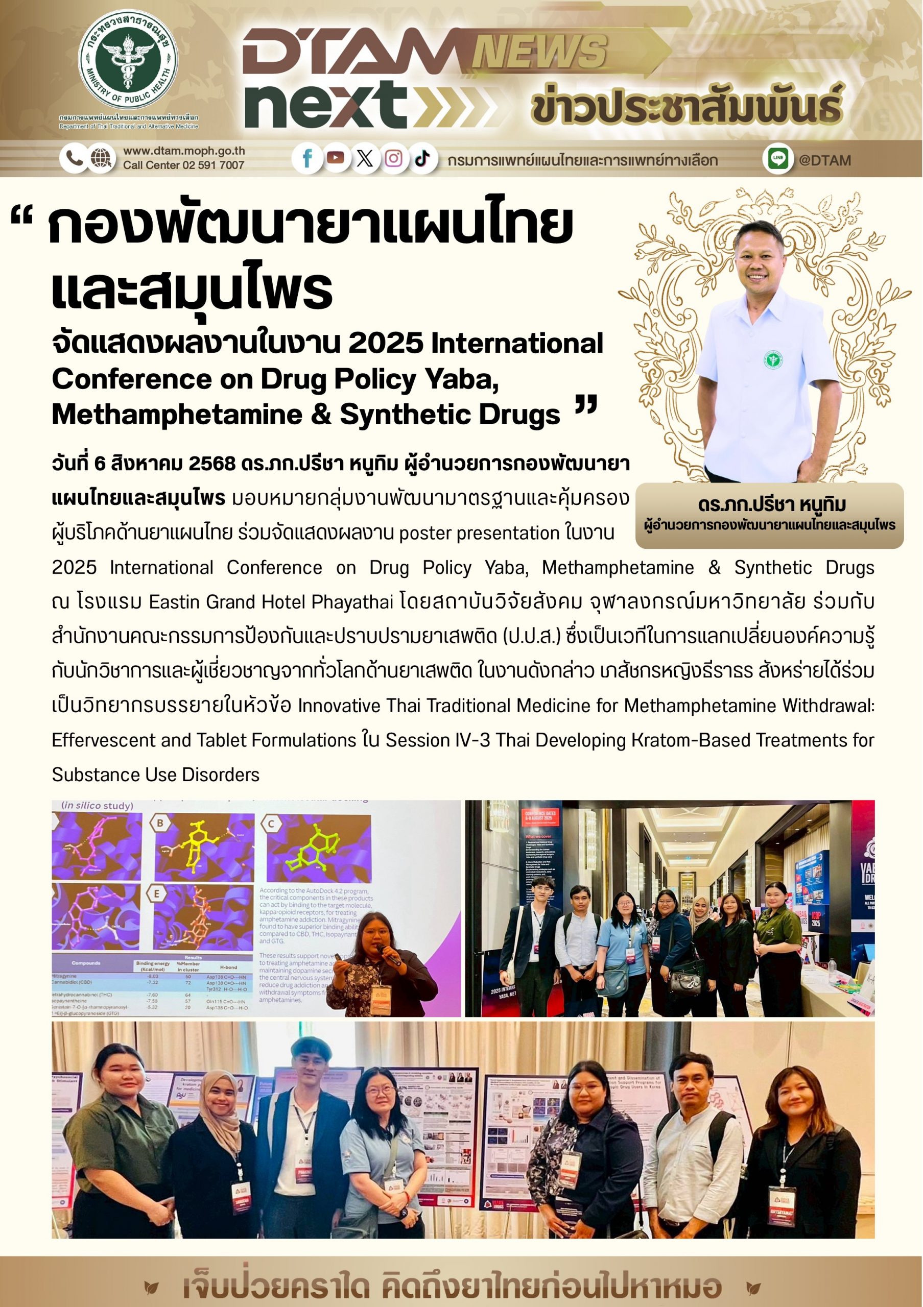 กองพัฒนายาแผนไทยและสมุนไพร จัดแสดงผลงาน poster presentation ในงาน 🌍 2025 International Conference on Drug Policy Yaba, Methamphetamine & Synthetic Drugs